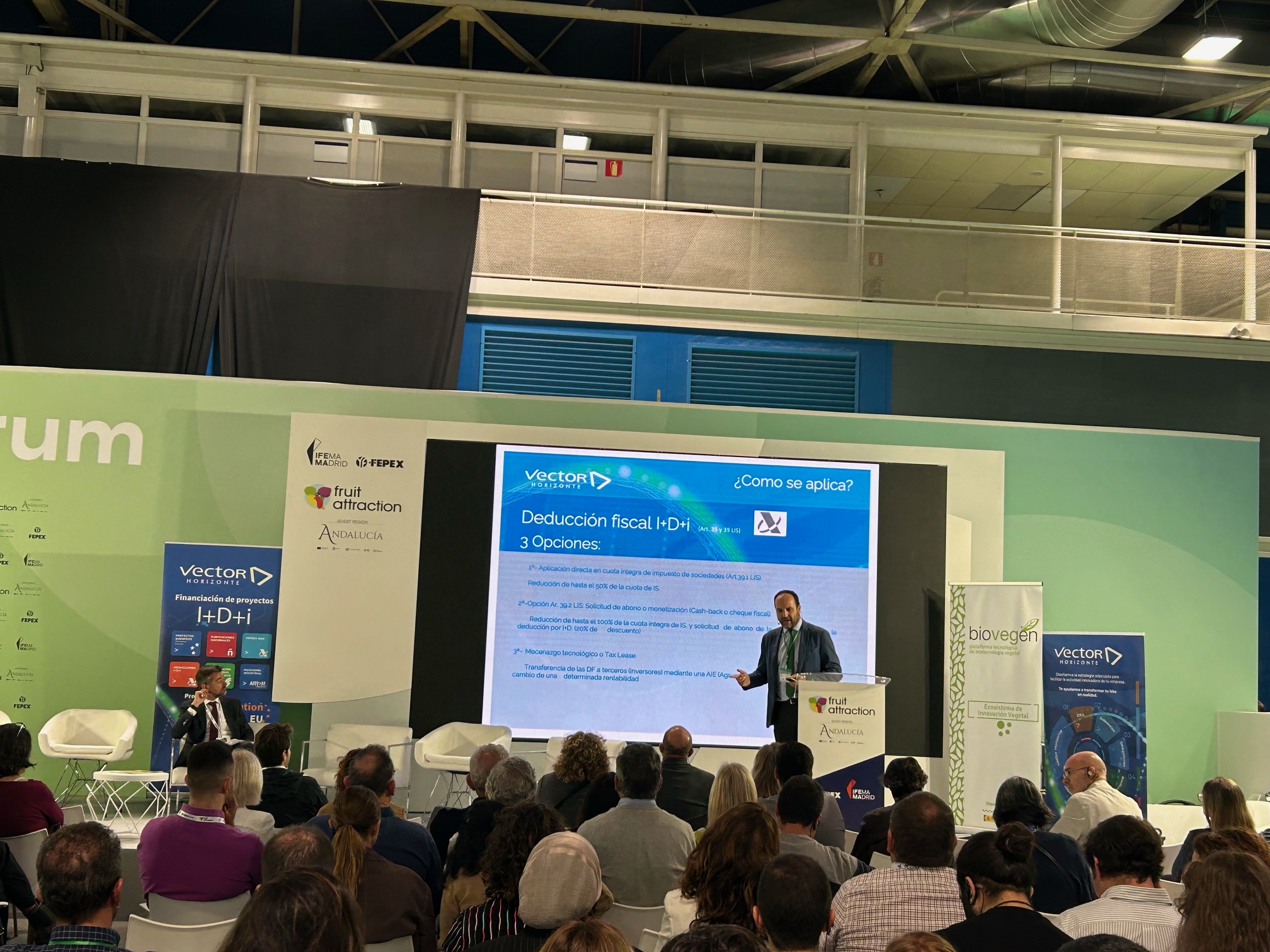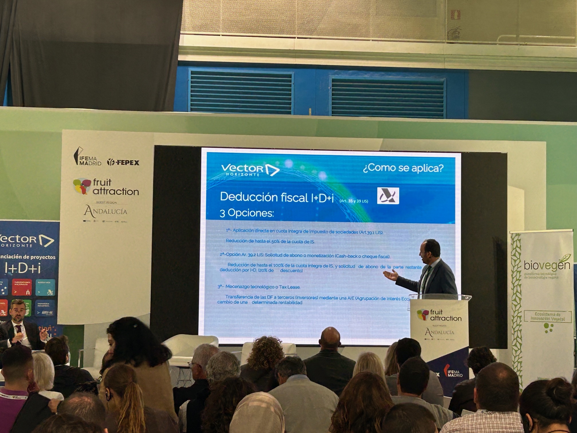 El pasado 9 de octubre de 2024 tuvimos el placer de participar en el Congreso “Estimulando la Innovación Vegetal”, un evento patrocinado por Vector Horizonte y organizado por Biovegen, dentro de la feria Fruit Attraction 2024, celebrada en el Auditorio FRUIT FORUM de IFEMA-Madrid.